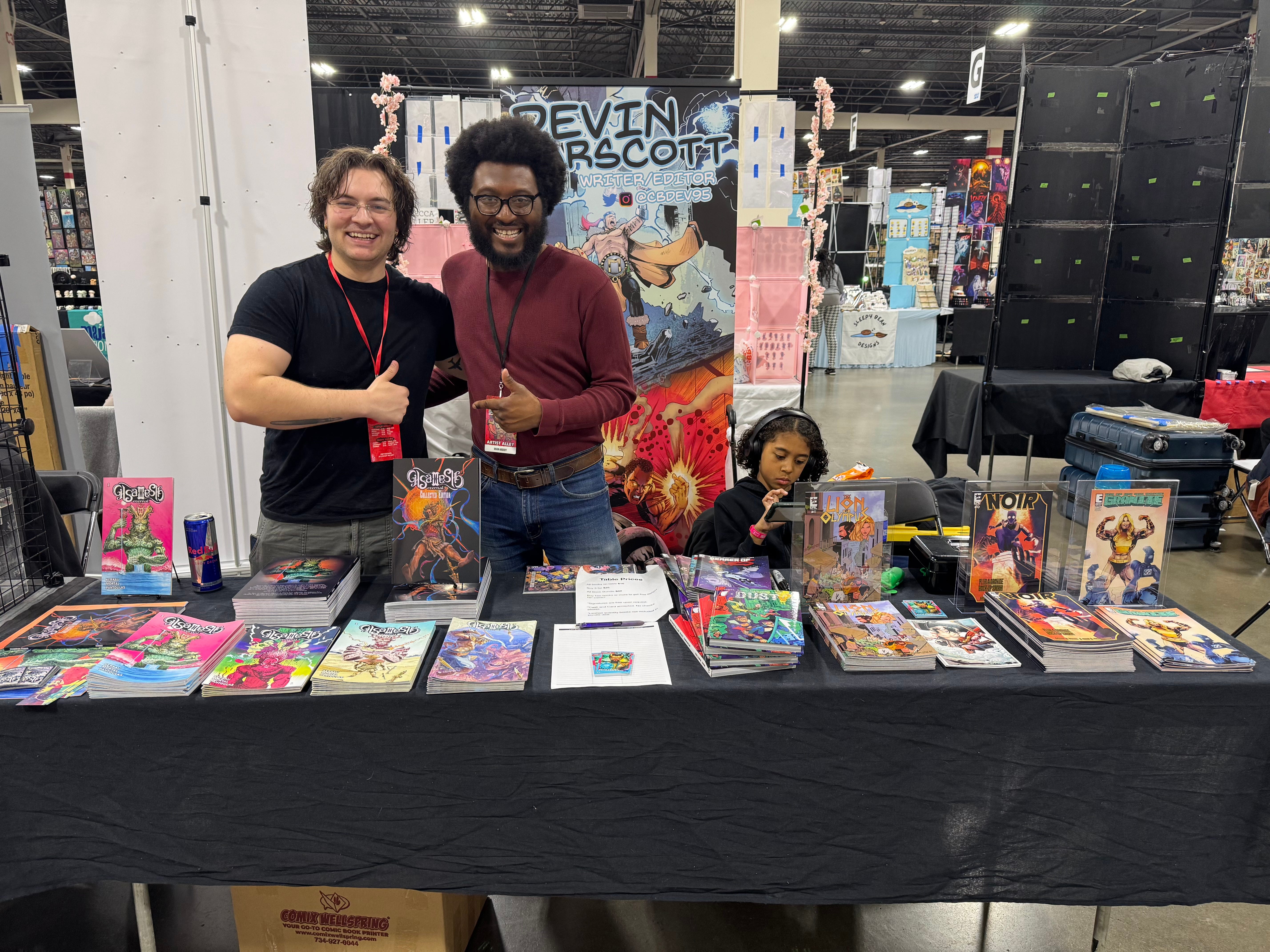 I split the table with friend and creator Cam Kerkau, as we both tackled a 3-day show together to spread the word of comics. For those who don’t know Cam, he’s the creator of the stellar mythological comic, Gilgamesh: Eternal, and by far one of my favorite creators who I’ve gotten to connect with in my time in the industry. Lots of insightful chats involving what we love, we didn’t land, and other riveting moments.